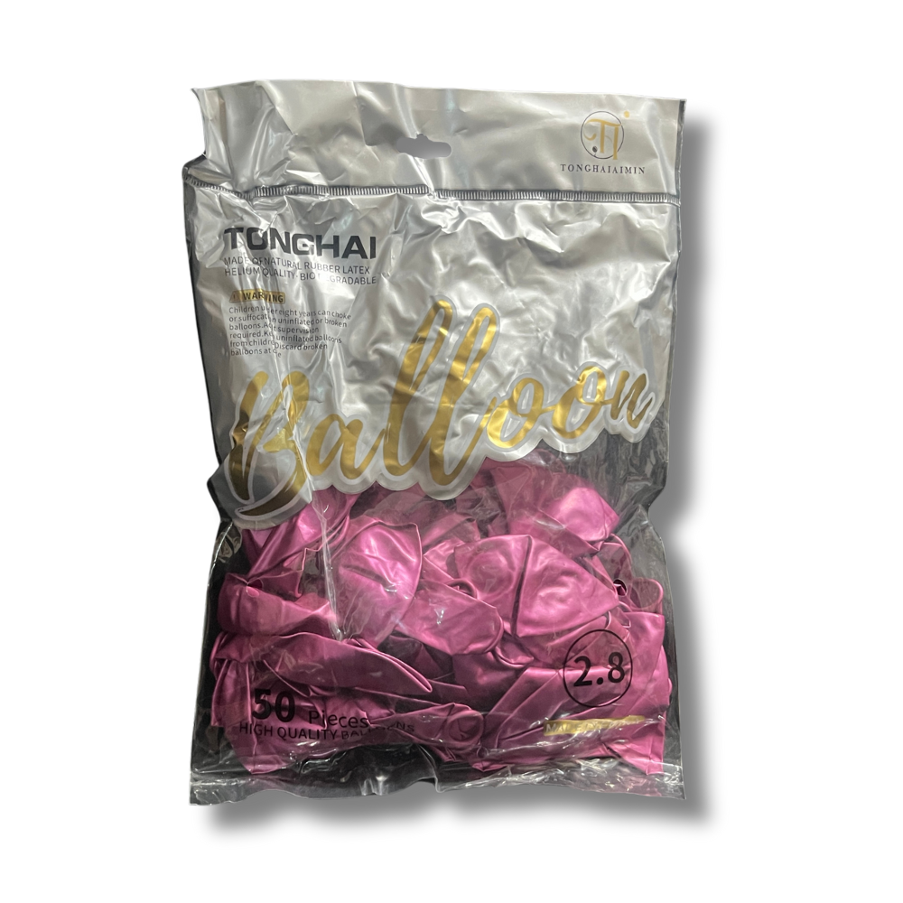 Sachet de 50 ballons couleurs métalliques rose 2,8 g, parfaits pour décorer anniversaires, baby shower, mariages et fêtes girly. Leur finition rose métallisée apporte une touche douce, chic et lumineuse à vos arches de ballons, centres de table, backdrops photo et décorations de salle.