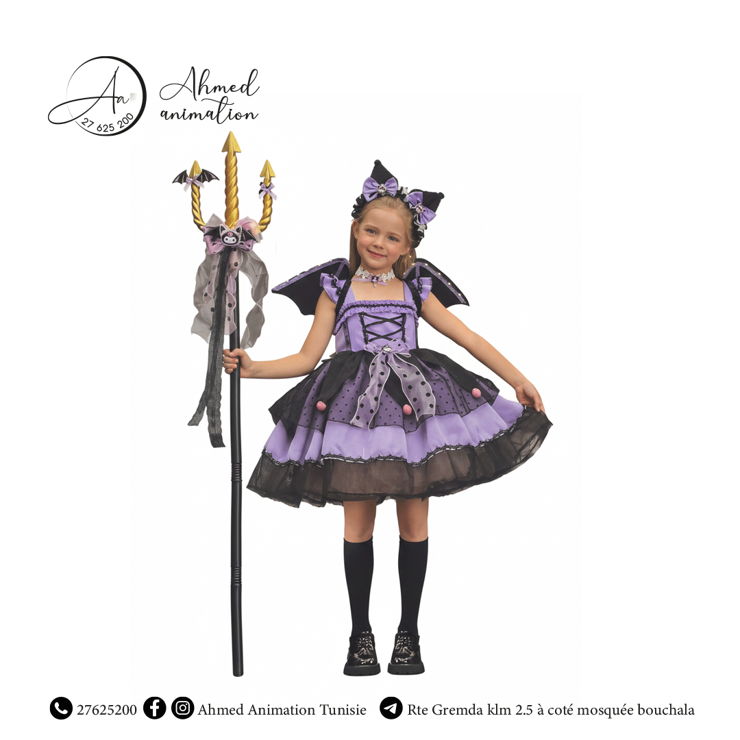 Accessoires inclus : Livré avec un serre-tête à oreilles, des ailes noires et un sceptre doré décoré.