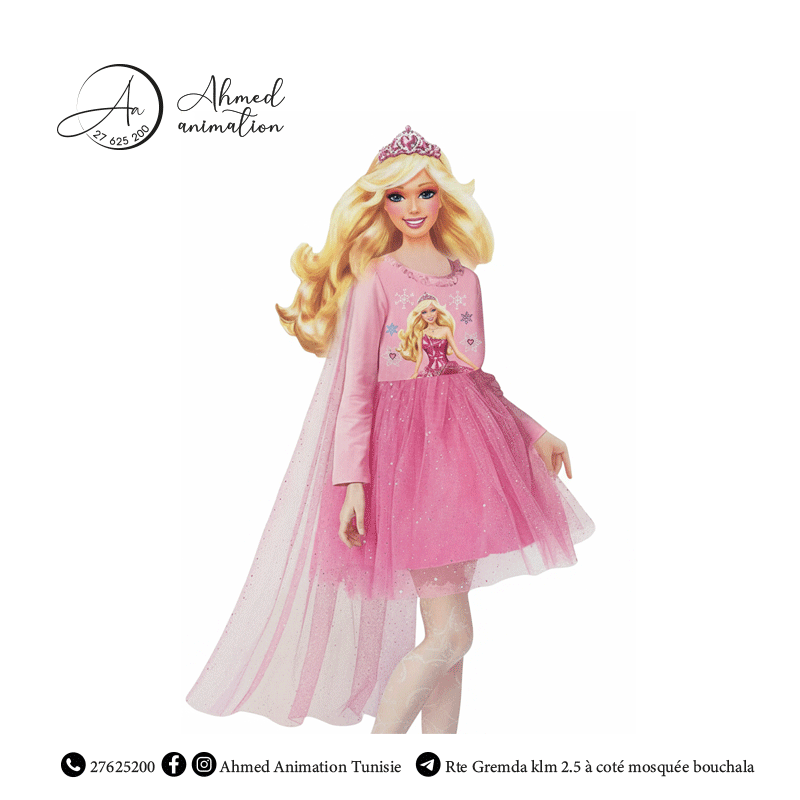 Ce déguisement de princesse Barbie pour fille est parfait pour transporter votre enfant dans un univers de rêve et d’élégance, ajoutant une touche de glamour et de magie à chaque fête.