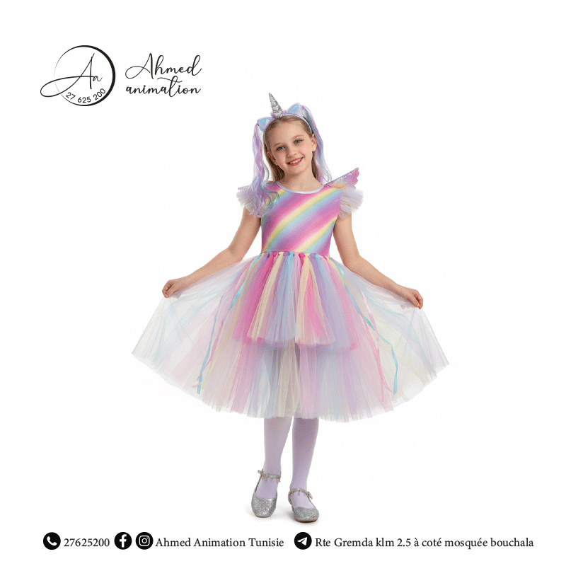 Ce déguisement de princesse licorne arc-en-ciel pour fille est parfait pour transformer votre enfant en une créature légendaire et féerique, apportant une touche de magie et d’éclat à toutes les fêtes. Ce costume complet permet à l’enfant de se glisser dans la peau d’une licorne merveilleuse pour s’amuser lors des anniversaires, spectacles d’école, carnavals et animations.