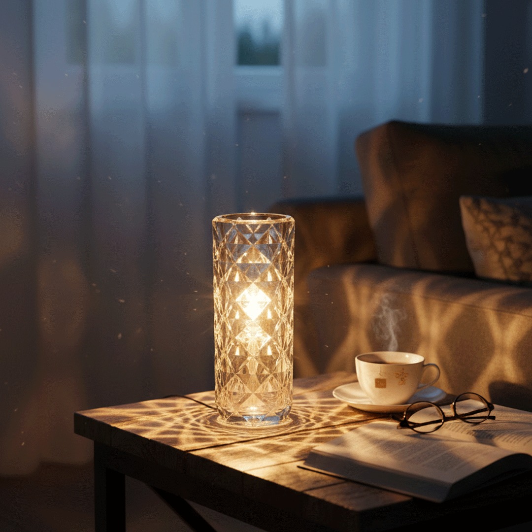 Cette lampe cylindrique effet cristal allie élégance et modernité. Sa structure transparente aux motifs géométriques reflète la lumière avec éclat, créant une ambiance chic et sophistiquée. Idéale pour les tables de réception, les mariages ou la décoration intérieure, elle apporte une touche de luxe discret et illumine vos espaces avec style.
