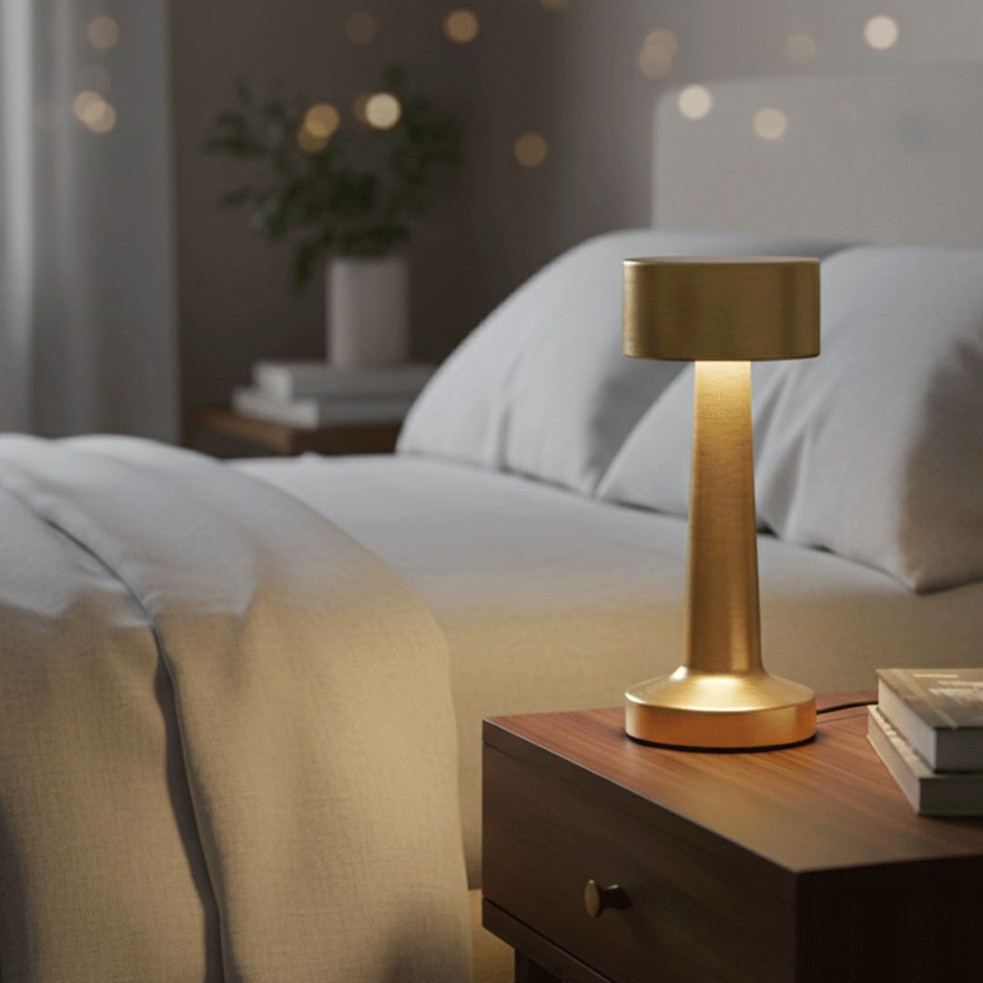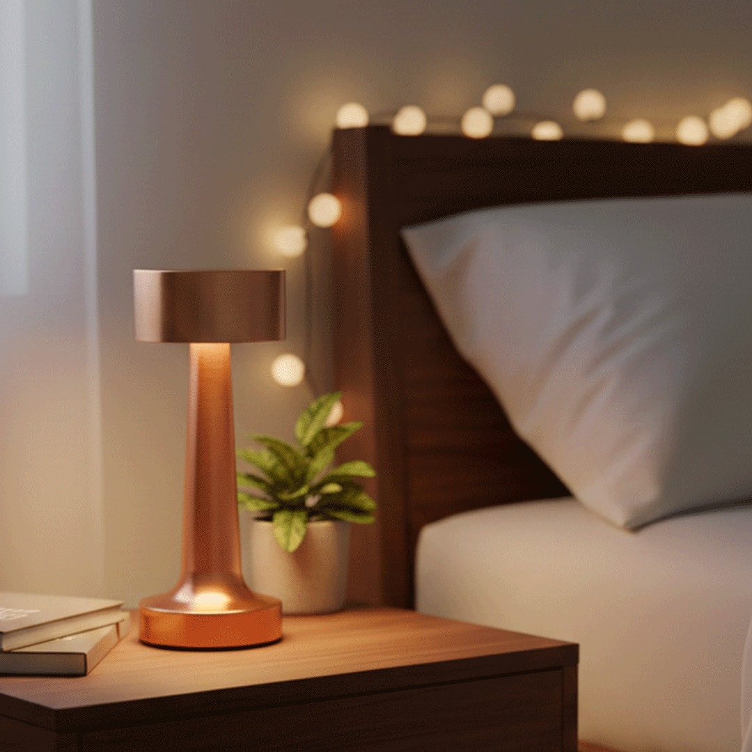 Lampe de table en métal au design moderne, rechargeable et idéale pour créer une ambiance élégante.