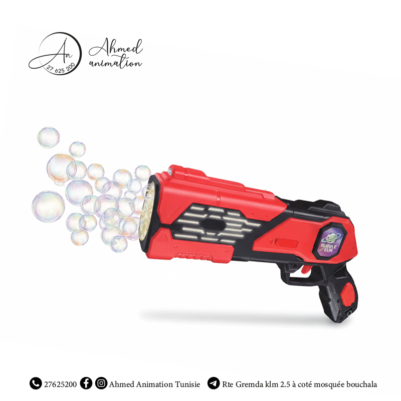 Ce pistolet à bulles automatique motorisé projette instantanément une rafale continue de bulles de savon. Son design robuste rouge et noir, agrémenté de lumières LED, en fait l’accessoire idéal pour amuser les enfants et animer toutes les fêtes.